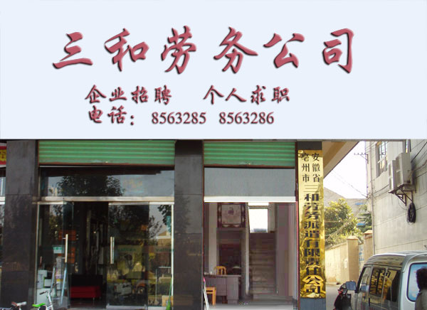 亳州市三和人力資源服務(wù)有限公司是經(jīng)人力資源和社會保障局許可,工商局注冊登記和有關(guān)行政部門認(rèn)可,具有獨立法人資格的專業(yè)化人力資源機(jī)構(gòu)。公司成立于2007年,注冊資金1200萬,主要為各類企業(yè)提供勞務(wù)派遣、勞務(wù)代理等勞務(wù)方面的事宜。
