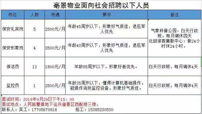 亳景物業(yè)面向社會(huì)招聘以下人員