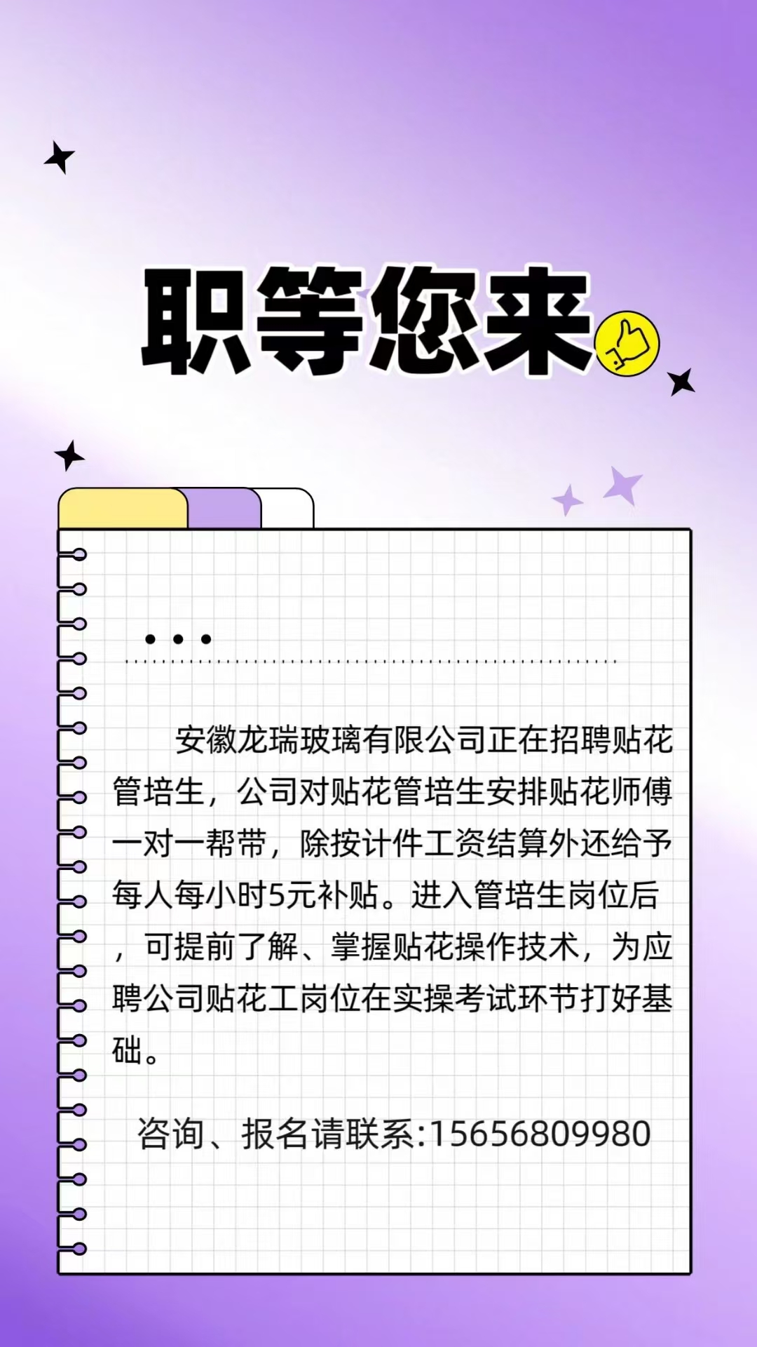 安徽龍瑞玻璃有限公司招聘貼花管培生